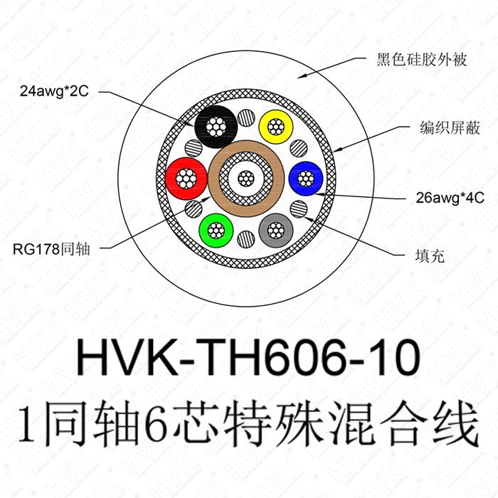 1同軸6芯特殊線 硅膠黑色