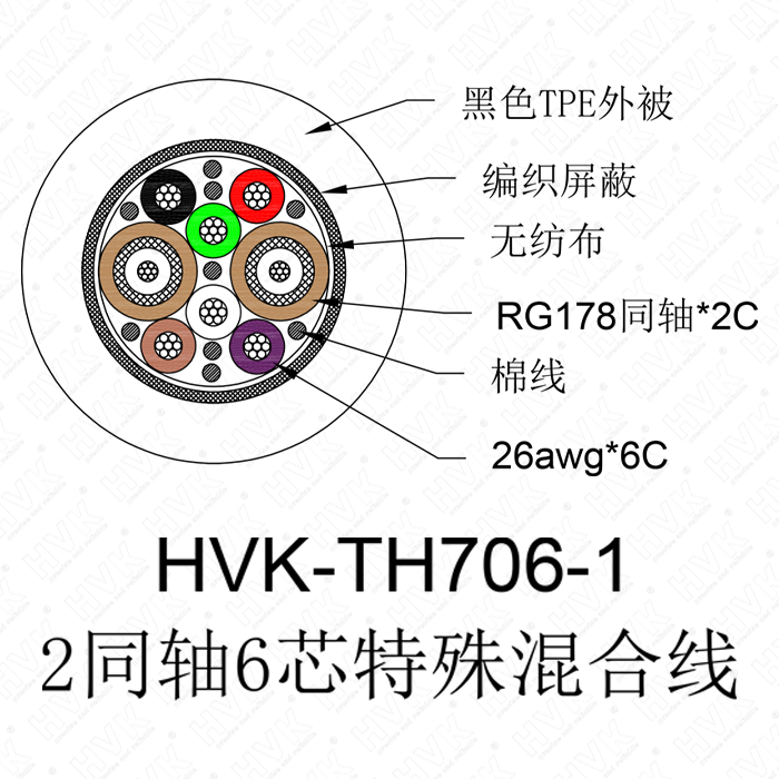 2同軸6芯特殊線TPE黑色
