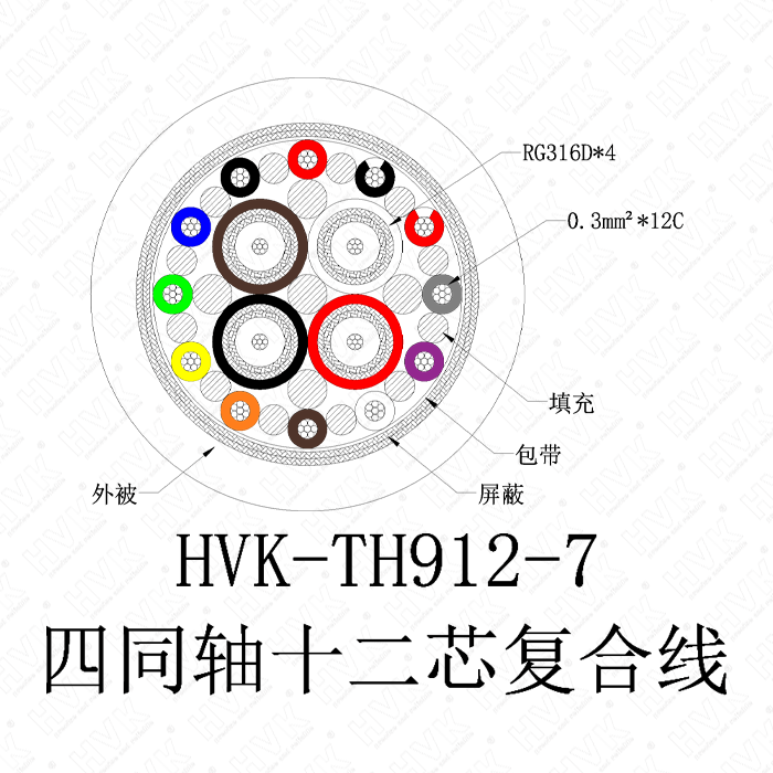 4同軸12芯特殊線PVC黑色
